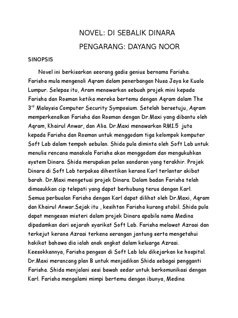 Sinopsis Novel Disebalik Dinara Sinopsis Novel Di Sebalik Dinara ID. Interested in flipbooks about NOVEL DI SEBALIK DINARA. Di dalam pesawat kebetulan pemuda.